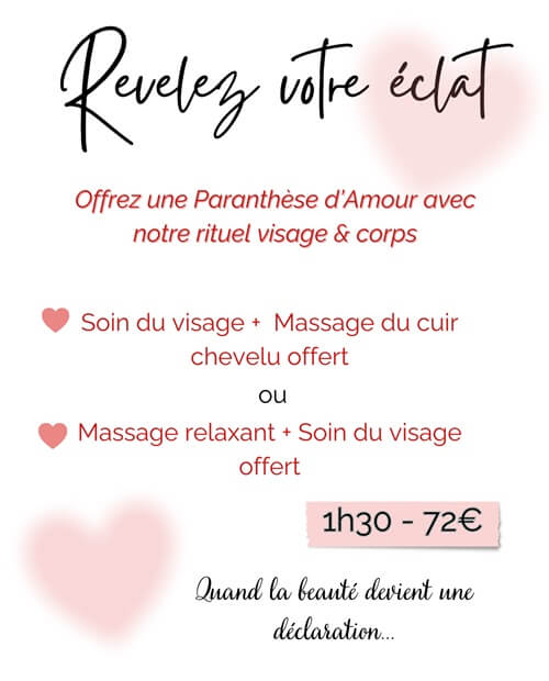 Votre rituel visage et corps 90 minutes au choix pour seulement 72€ ! Profitez d’un massage du cuir chevelu ou d’un soin visage OFFERT.
